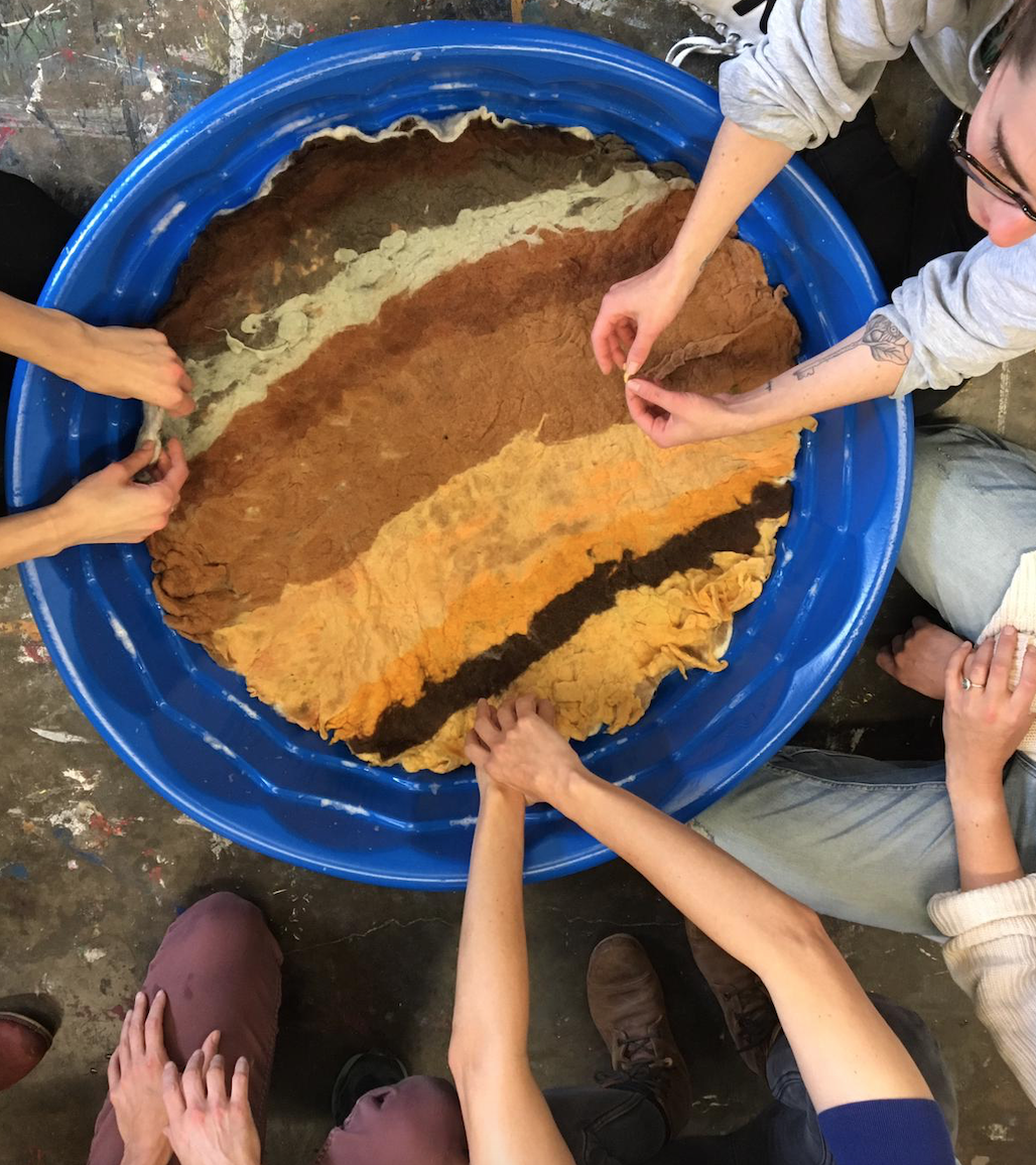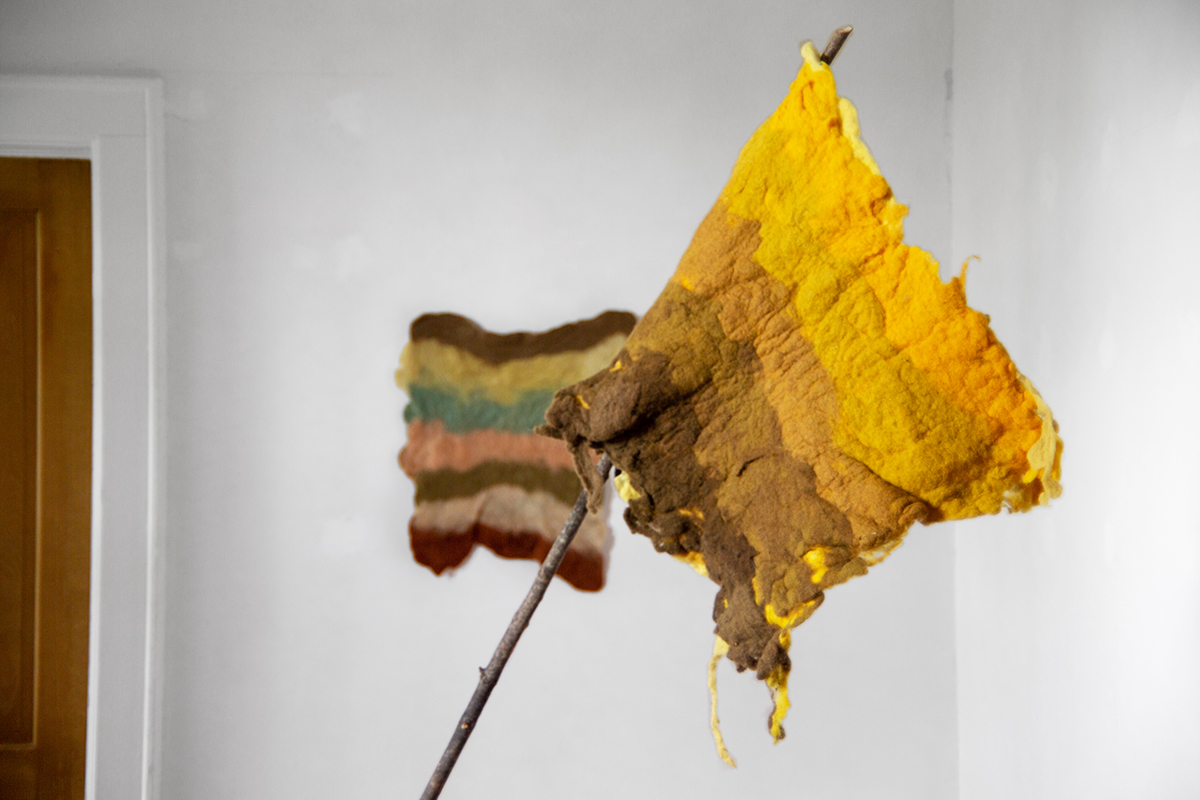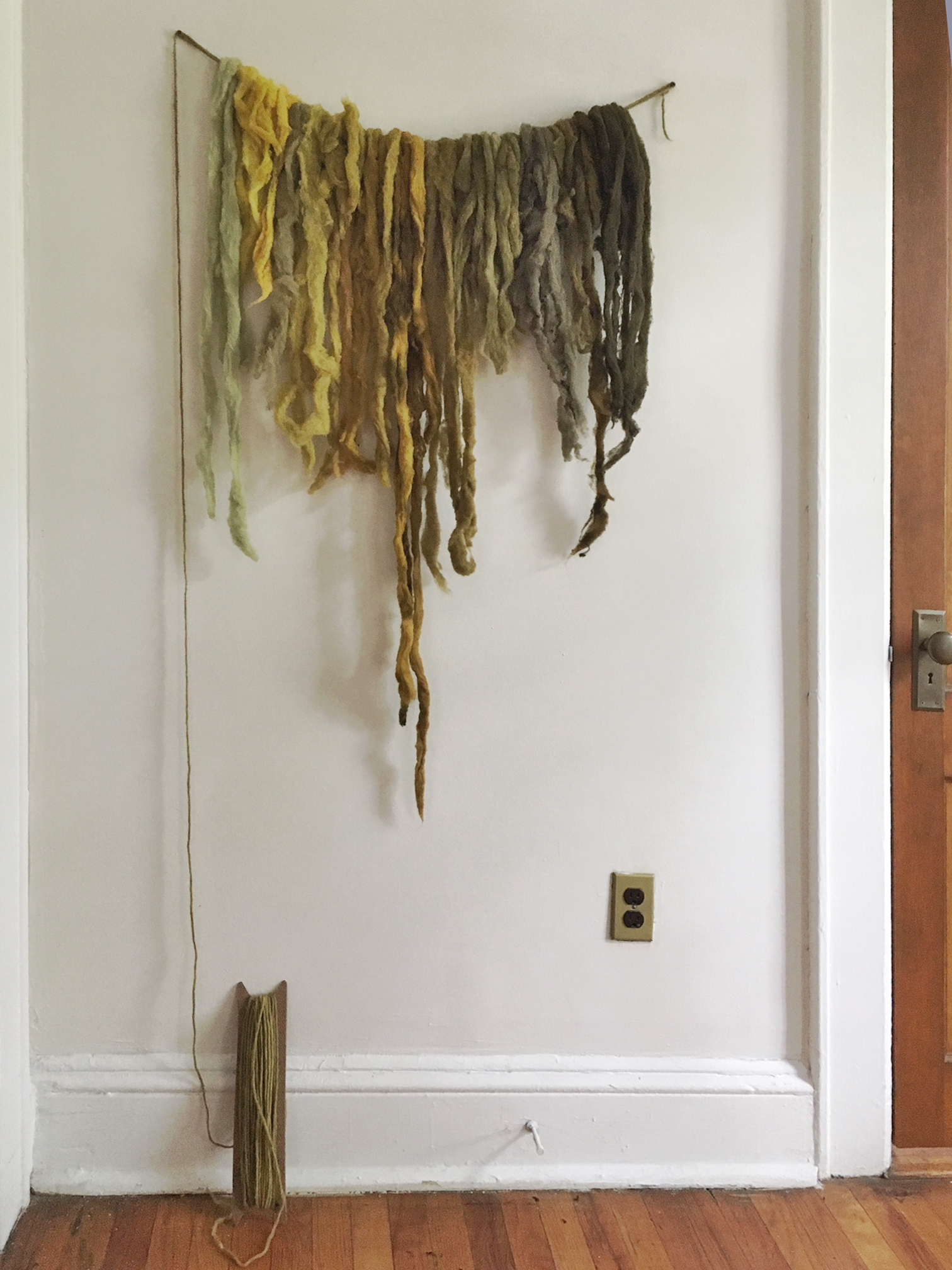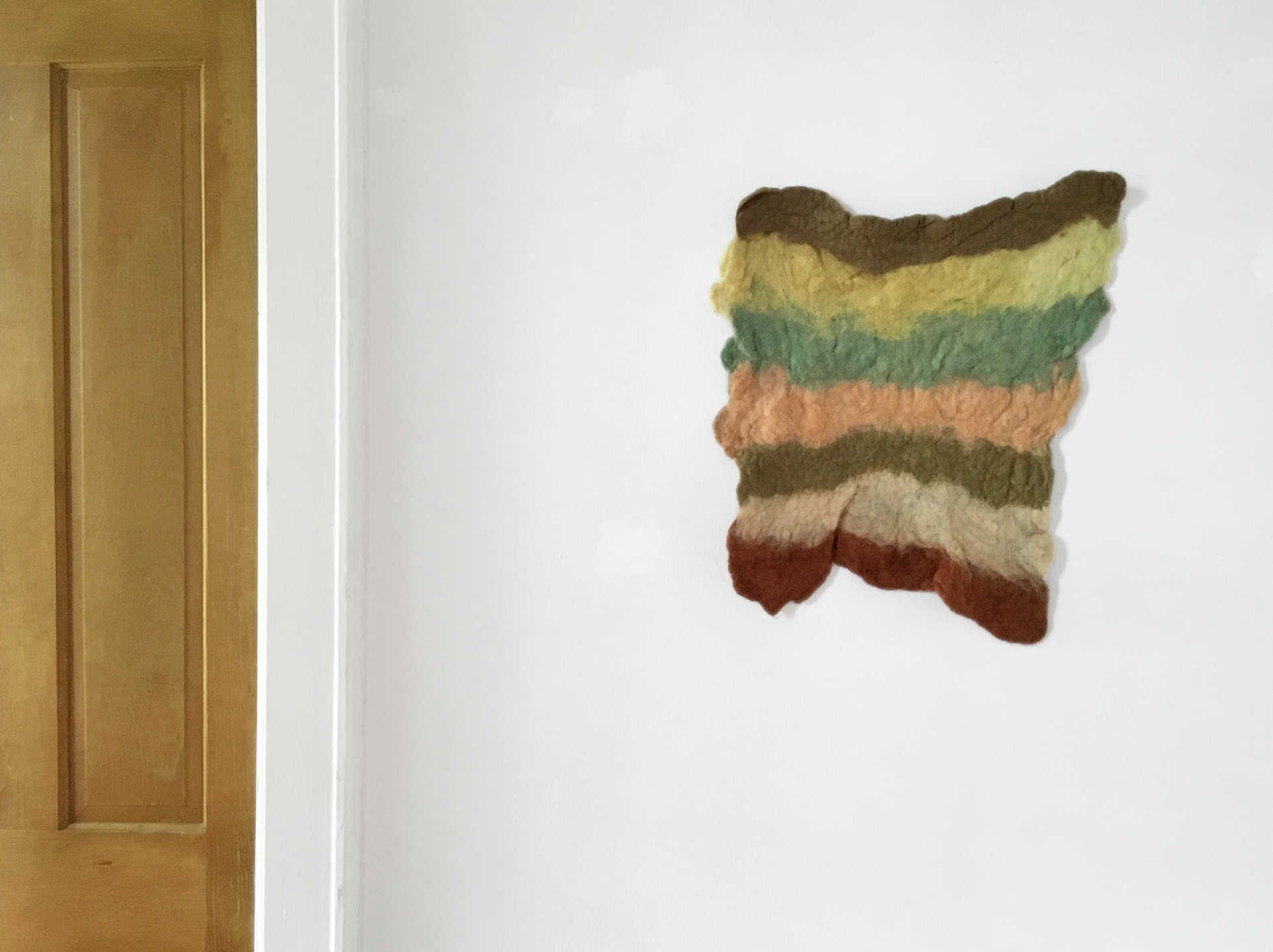 Wet felting of wool is a tactile process during which the animal fibers must be shocked, massaged, and submerged in hot and cold water repeatedly. Wool dyed with goldenrod-derived colors will be shocked and bound into a subtle spectrum. What is shocking? Why does visibility matter?