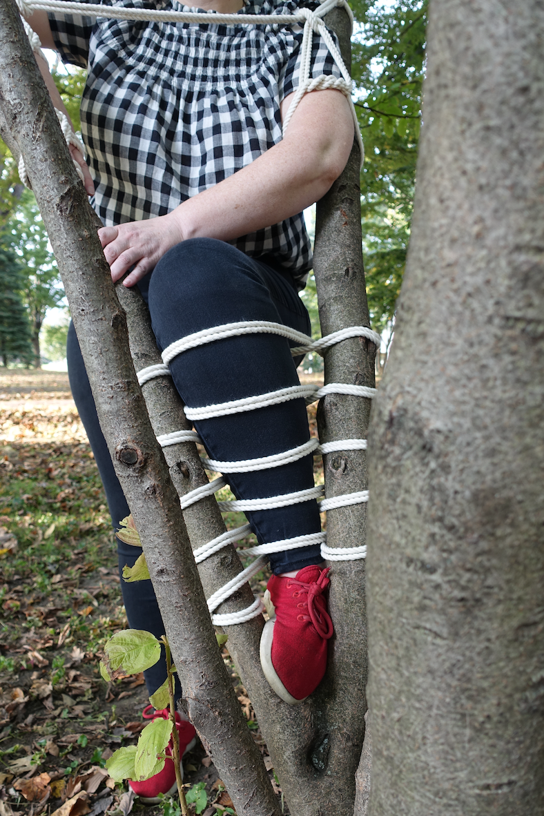Arbor ∞ Ardor proposes a new interspecies courting ritual. Trees and shrubs, woody or willowy, are known for gradual growth and support systems hidden from view. Participants will be invited to court the plant of their choice with the help of the artists/intermediaries. Should both plant and participant consent, they will be guided into contact together with rope binds. Presented in collaboration with Paloma Barhaugh-Bordas