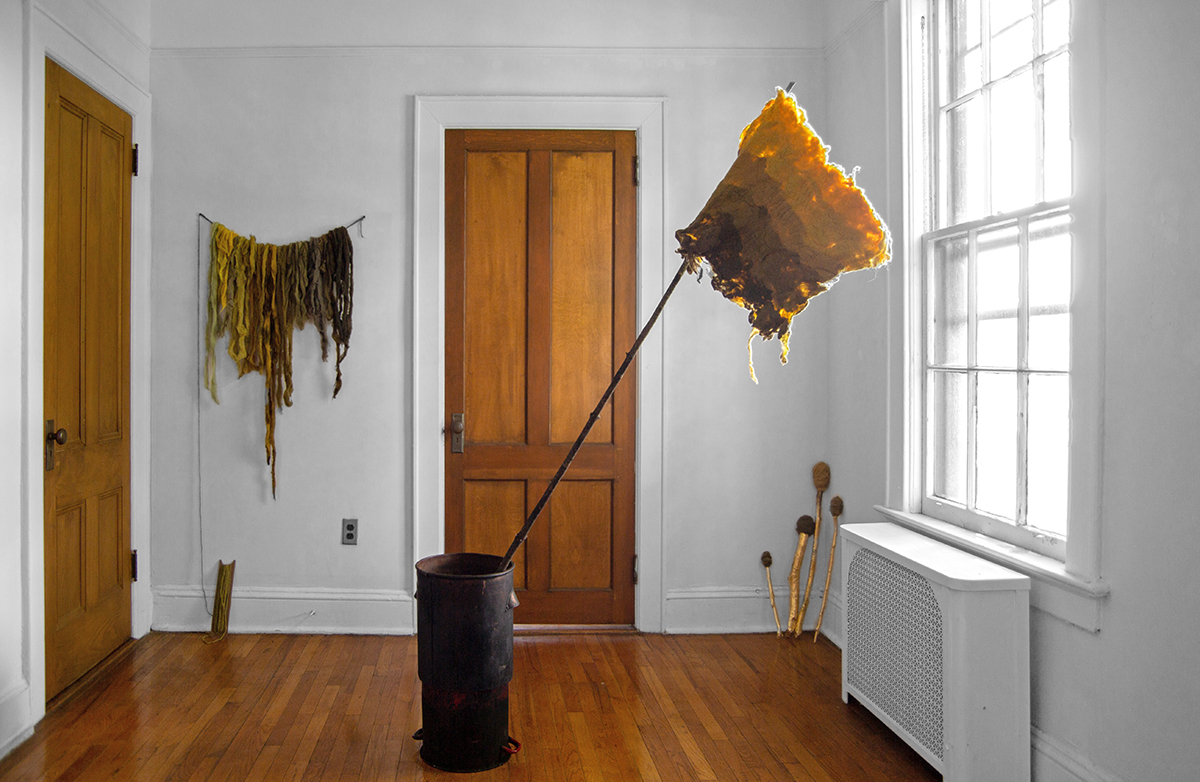 Christy Gast brings her Mobile Tinctorium to Governor’s Island to extract color from goldenrod (solidago sp.), a native plant in the aster family. Gast’s process includes transferring color from plants to fibers (foraging, dyeing, felting), sculptural installations, and exploratory, poetic, performative and collaborative actions. She will work on-site and host events throughout the summer, amidst an evolving exhibition of projects and processes in the studio.